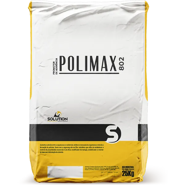 O POLIMAX® 802 é um copolímero com base de acetato de vinila e etileno em pó dispersível em água epode ser utilizado em diversos setores da construção civil, oferece elevada força de ligação, resistência àabrasão, aderência e flexibilidade entre o produto a ser aplicado ao substrato. Aumenta também aflexibilidade e resistência dos materiais cimentícios deixando-os mais flexíveis e resistentes a fissuras. Ao ser usado na fabricação de argamassas, a temperatura dos agregados e cimento deve estar ≤ 40 ⁰C,evitando assim a formação de grumos por temperatura.